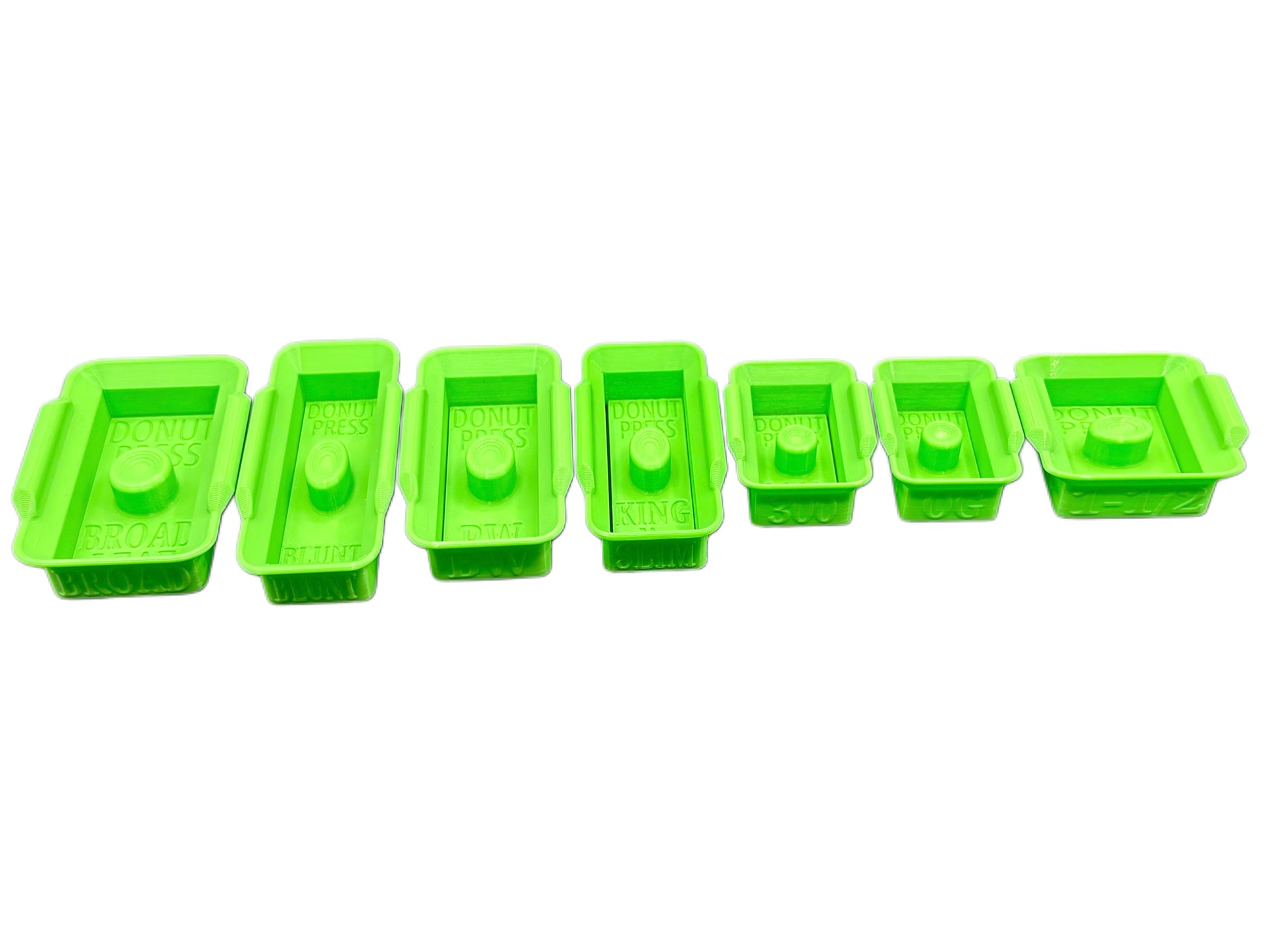 The Version 1.2 Donut Press Set with all 7 different sizes. Made from 100% plant based materials. Eco friendly.